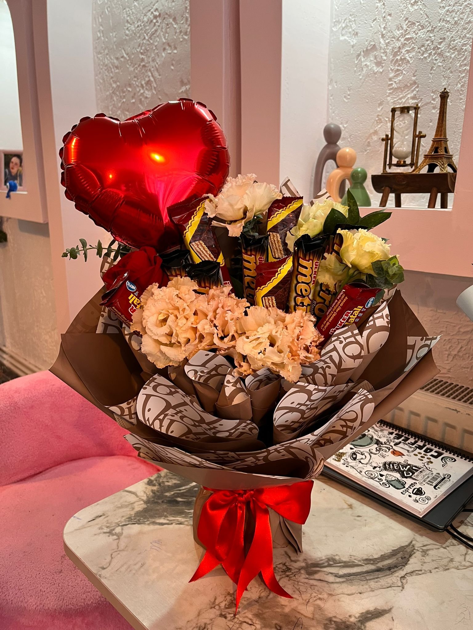 Çikolata severleri Kalbim elinde buketi ile tatlı ve huzur verici bir tasarım ile karşılıyoruz. Kullanılan çiçek ve çikolatalar sizlerin tercihi üzerine seçiliyor bu nedenle whatsap üzerinden farklı tasarım için iletişime geçebilirsiniz…