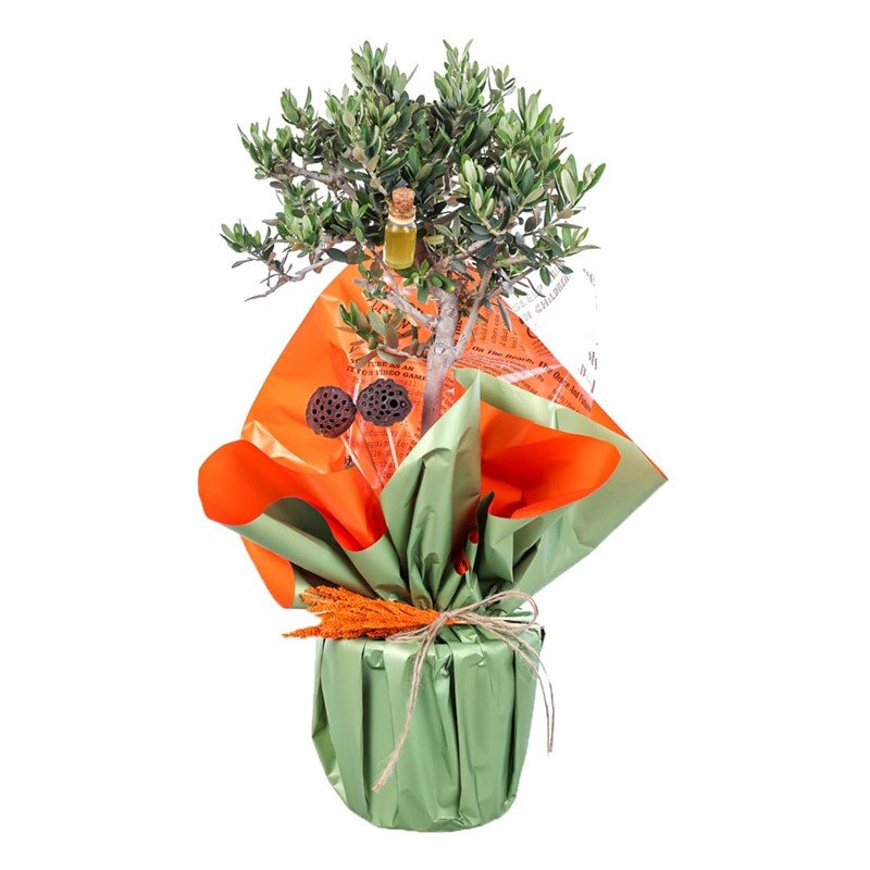 Olive Story Zeytin Ağacı, doğanın bereketini ve kadim Akdeniz kültürünün zarafetini bir araya getiren özel bir aranjmandır. Canlı yeşil yaprakları, karakteristik gövdesi ve yanında yer alan minyatür zeytinyağı şişesiyle yaşam alanlarınıza hem estetik hem de anlamlı bir dokunuş katar.